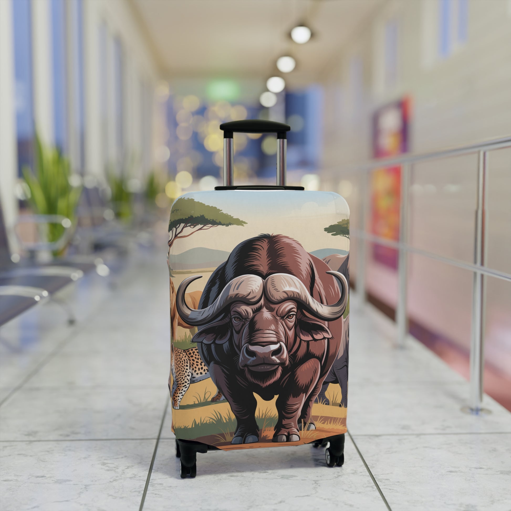 African Safari Giants Luggage Cover: The Majestic Buffalo | Protective Travel Case Accessory