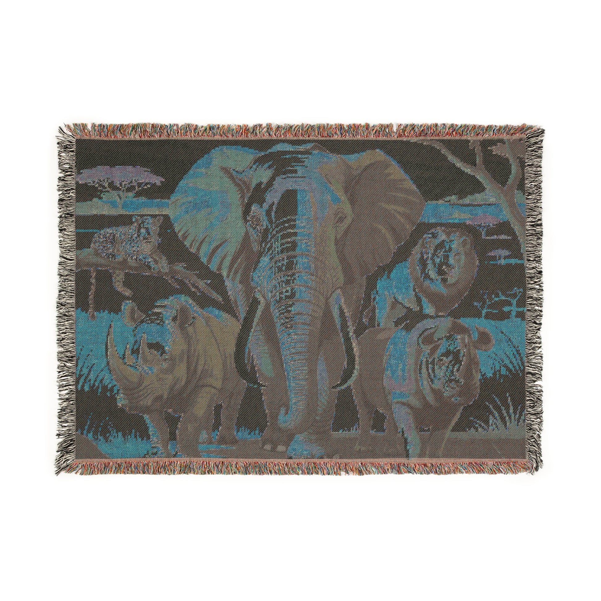 Bring the spirit of the African savanna into your home with this breathtaking Big Five Woven Tapestry Throw. Featuring the iconic Lion, Leopard, Elephant, Rhino, and Buffalo, this blanket is a stunning piece of textile art that brings power and majesty to any space.